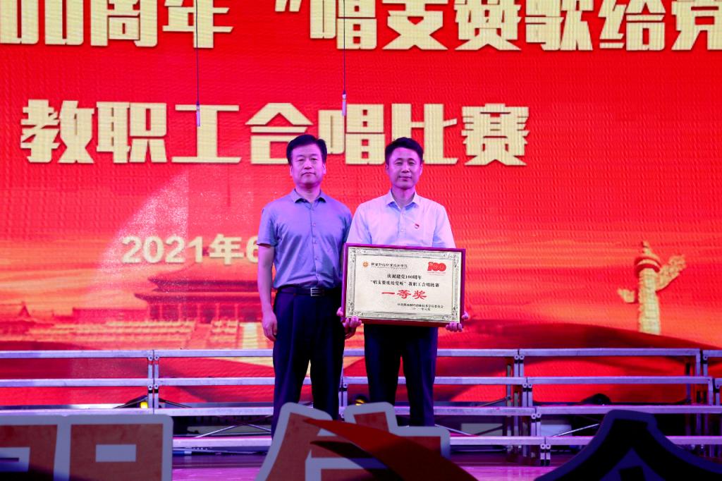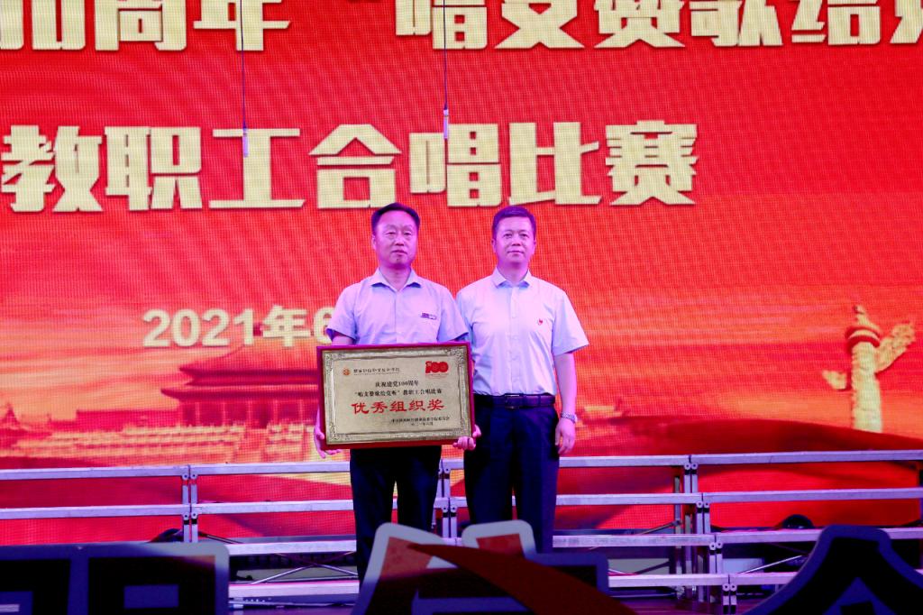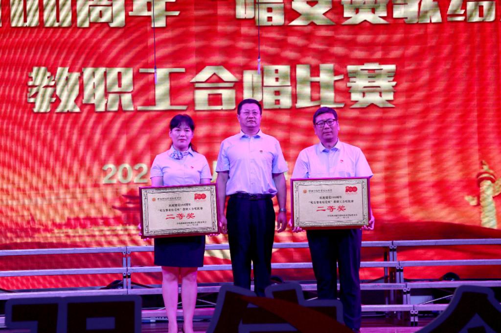 为热烈庆祝中国共产党成立100周年,2021年6月29日下午,由校工会主办的“唱支赞歌给党听”主题教职工合唱比赛在大礼堂隆重举行。省委党史学习教育第十三巡回指导组副组长陈新建及成员黄小丽、曹越莅临指导。学院党委书记张志华,院长程书强,党委副书记兼纪委书记刘文青,党委副书记朱华斌,副院长张秦龙、雷旭出席比赛现场并分别参加了所在工会分会的合唱。