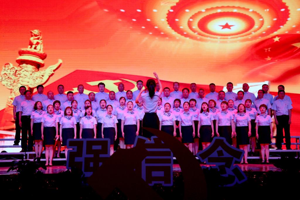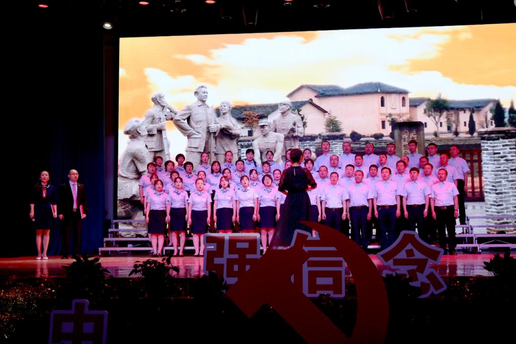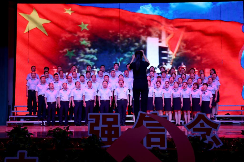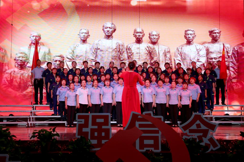 《团结就是力量》《唱支山歌给党听》《我的祖国》《我和我的祖国》《保卫黄河》《歌唱祖国》……一支支动人的旋律在大礼堂响起,舞台上红旗招展、载歌载舞,观众席上随声应和、掌声不断。这是一场视听的盛宴,这是一次真情的告白,骄阳蕴含着我们如火的激情,晨风摇曳着我们纷飞的梦想;最嘹亮的歌声唱响中华大地,最优美的旋律歌颂建党百年。