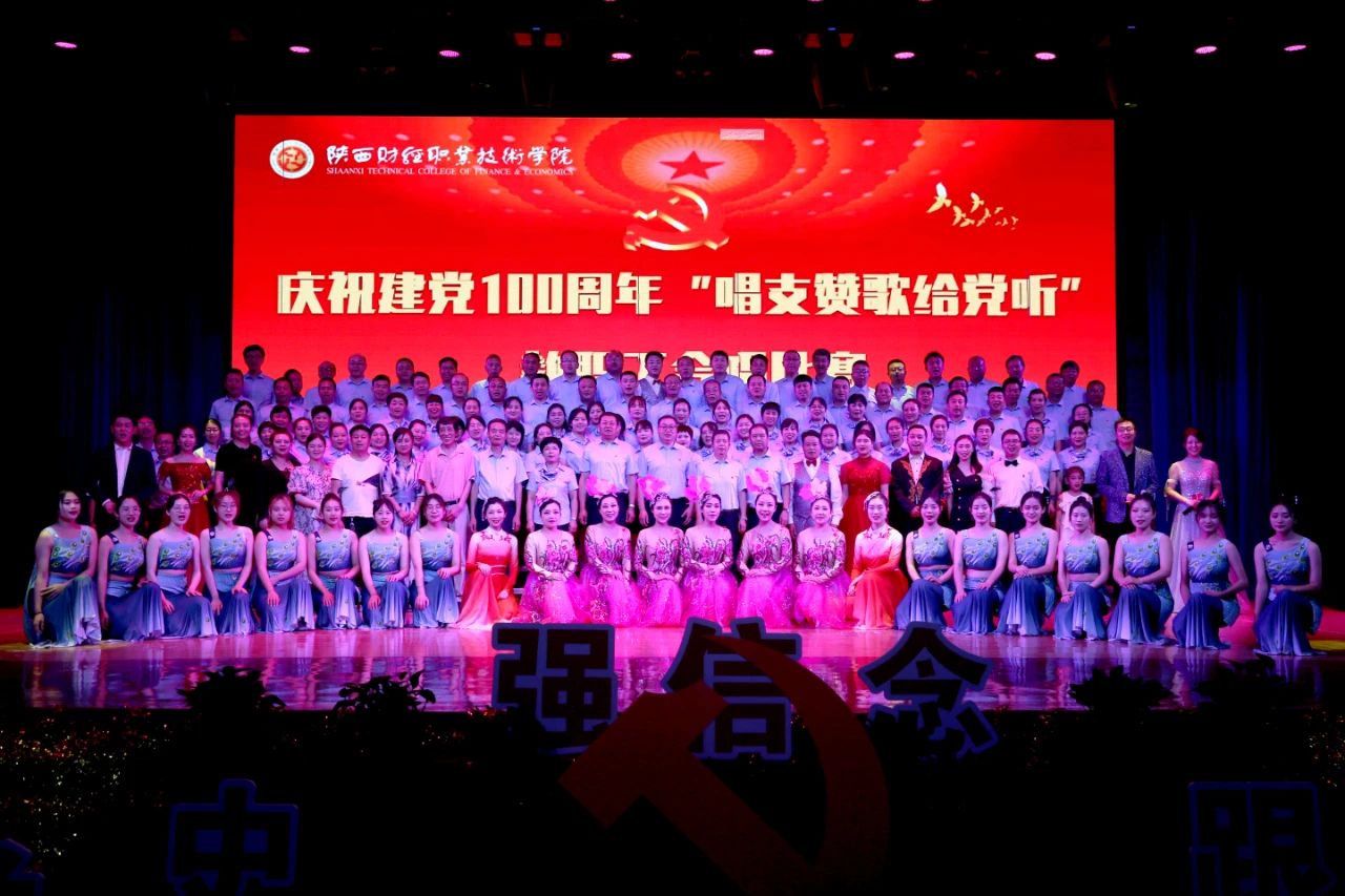 大礼堂内歌声悠扬、掌声不断。来自全校10个工会分会和陕西智领人力资源有限公司陕财职院项目部的老师们放声歌唱。他们歌唱风雨飘摇的嘉兴南湖,歌唱危机四伏的遵义古城,歌唱灯影摇曳的延安窑洞,歌唱红旗招展的天安门广场。歌唱百年来,中国共产党带领中国人民走过硝烟,穿过荆棘,领导中国革命不断从一个胜利走向另一个胜利。《没有共产党就没有新中国》,是在场每一位老师由衷发出的赞叹。他们唱得铿锵有力、自信豪迈,他们唱得声情并茂、激情澎湃,他们用最饱满的热情歌唱祖国,歌唱我们伟大的中国共产党。