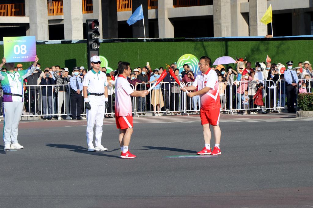 2021年9月10日上午,十四运会和残特奥会火炬在商洛传递,我校人文艺术学院院长贺兴文作为第八棒火炬手,高举熊熊燃烧的全运会火炬健步奔跑,并不时挥手向沿途的群众致意。