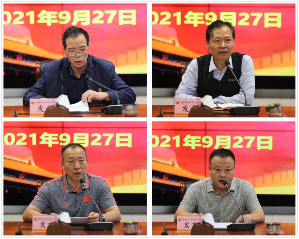 围绕“明史崇德”,教务处副处长雷剑、人文艺术学院执行院长崔斗、运动与健康管理学院院长李健兵、马克思主义学院副院长殷蓬勃分别进行了交流发言。他们结合习近平总书记在党史学习教育动员大会上的重要讲话精神,谈了各自对于党史学习教育的认识。他们认为,学习党史、新中国史,是坚持和发展中国特色社会主义、把党和国家各项事业继续推向前进的必修课。要通过党史学习,不断汲取历史的经验教训,在学史知史中感悟思想伟力;不断增强“明大德、守公德、严私德”的政治修养,在学史知史中淬炼忠诚品质;不断加强个人道德修养,在学史知史中把“讲道德、有品行”内化于心、外化于行。要深刻把握习近平总书记重要指示精神,贯彻落实党的教育方针,深化教育教学改革,为学院事业发展添砖加瓦,贡献个人的智慧和力量。