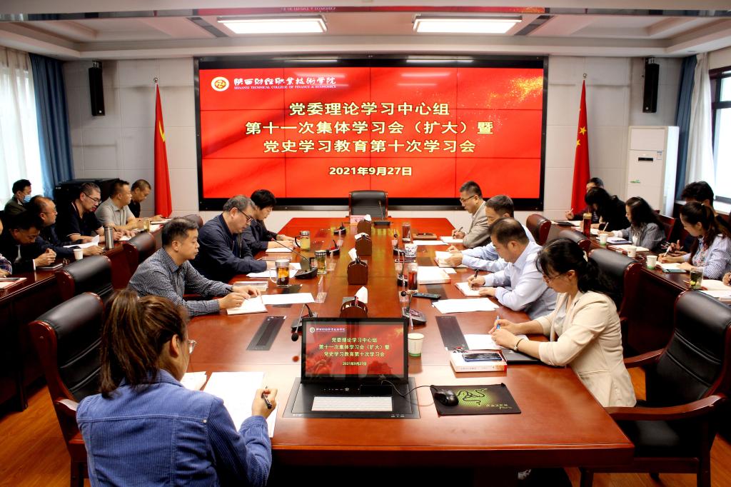 2021年9月27日下午,我校在办公楼四楼会议室召开党委理论学习中心组第十一次集体学习会(扩大)暨党史学习教育第十次学习会。学校党委委员、处级中层干部、直属党支部书记参加。院长程书强主持。