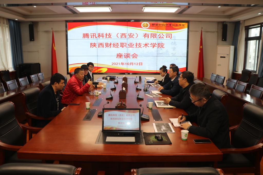 10月12日下午,陕西财经职业技术学院—腾讯科技(西安)有限公司校企合作洽谈会在办公楼四楼会议室召开,党委书记张志华主持会议。腾讯直播双创项目总经理马一先一行4人、党政办主任宋波、教务处副处长常茹,大数据学院院长王双明、商学院副院长李福顺、就业办主任杜鹏参加会议。