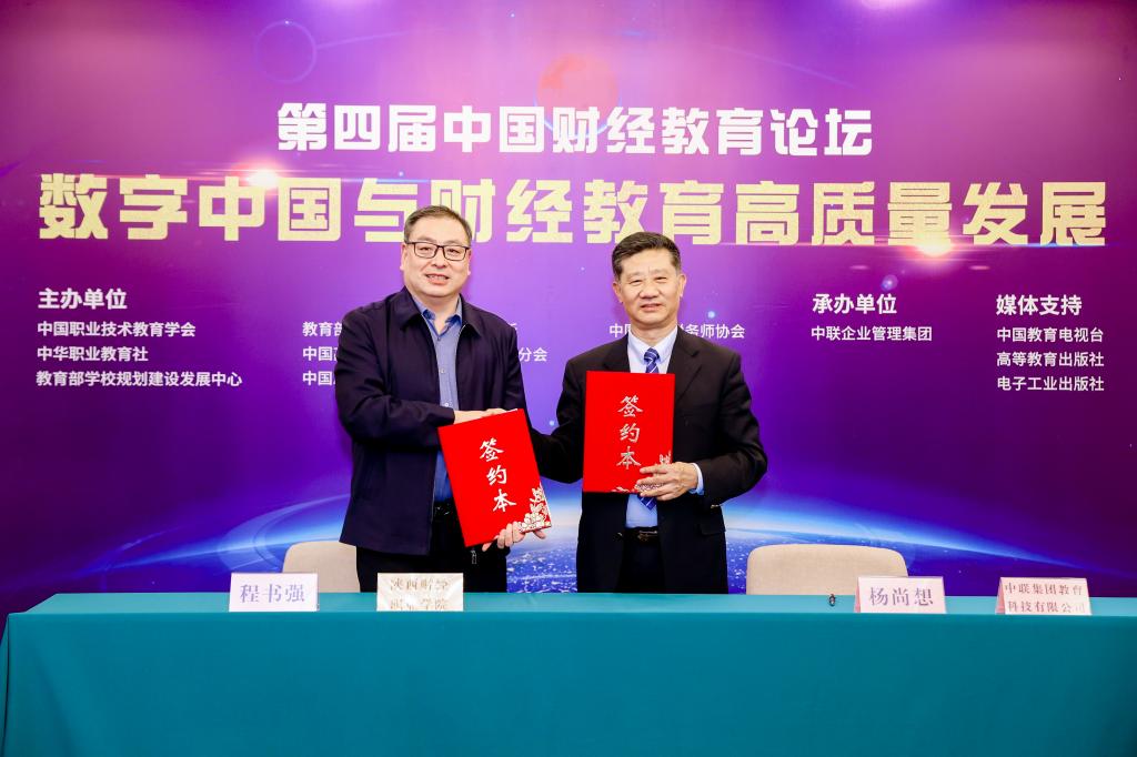 会上,程书强代表学校与中联集团教育科技有限公司签订了战略合作框架协议,未来双方将在人才培养、师资培训、技术研发、实验室建设、基地共建、社会服务等方面共同推进智慧创新发展计划,共建“陕财职院——中联智慧财经产业学院”,这将进一步提高校企合作的广度和深度,助力学院高质量发展。