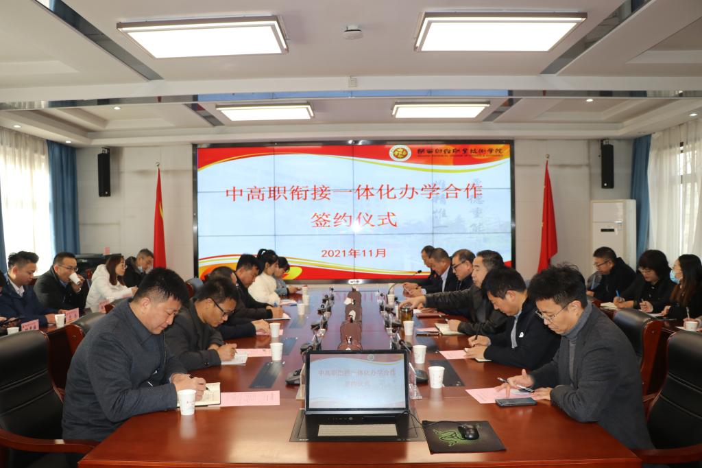 11月11日上午,我校中高职衔接一体化办学合作签约仪式在办公楼四楼会议室举行。院长程书强,副院长王勇出席,教务处、招生工作办公室及相关处室负责同志参加此次会议,会议由邓迪夫主持。