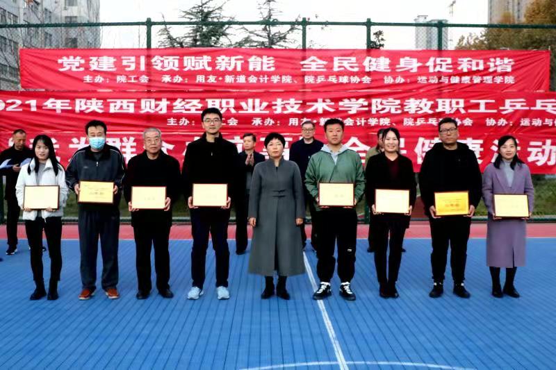 11月17日下午,由校工会主办,用友·新道会计学院、校乒乓球协会承办,运动与健康管理学院协办的2021年教职工乒乓球比赛在地下乒乓球场顺利收拍。来自10个二级分会和离退休及其他人员组成的11支代表队,共130名教职工参加了比赛。