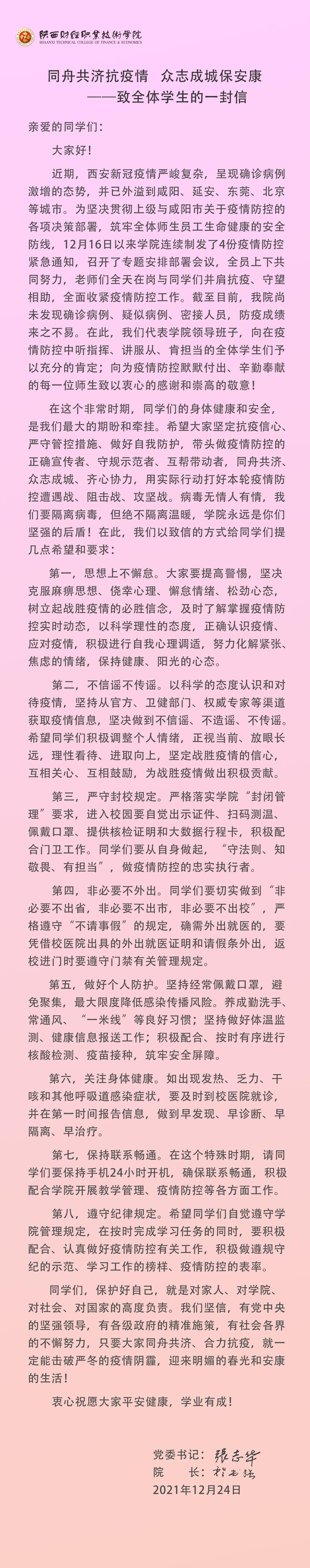 ——书记院长致全体学生的一封信