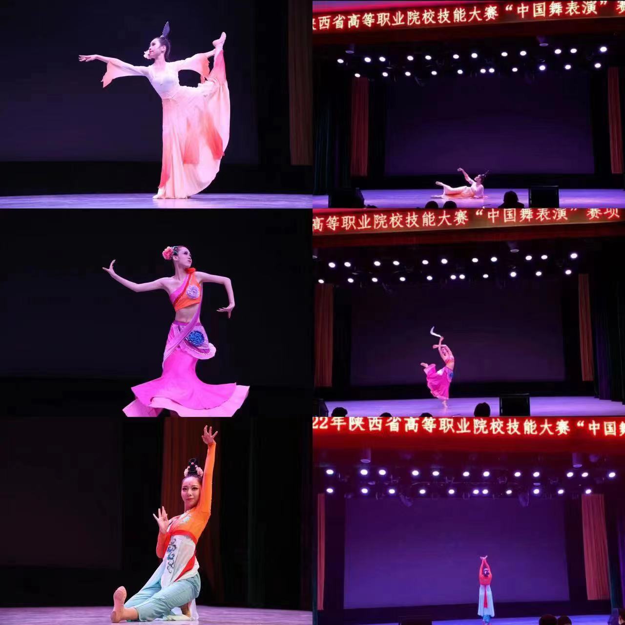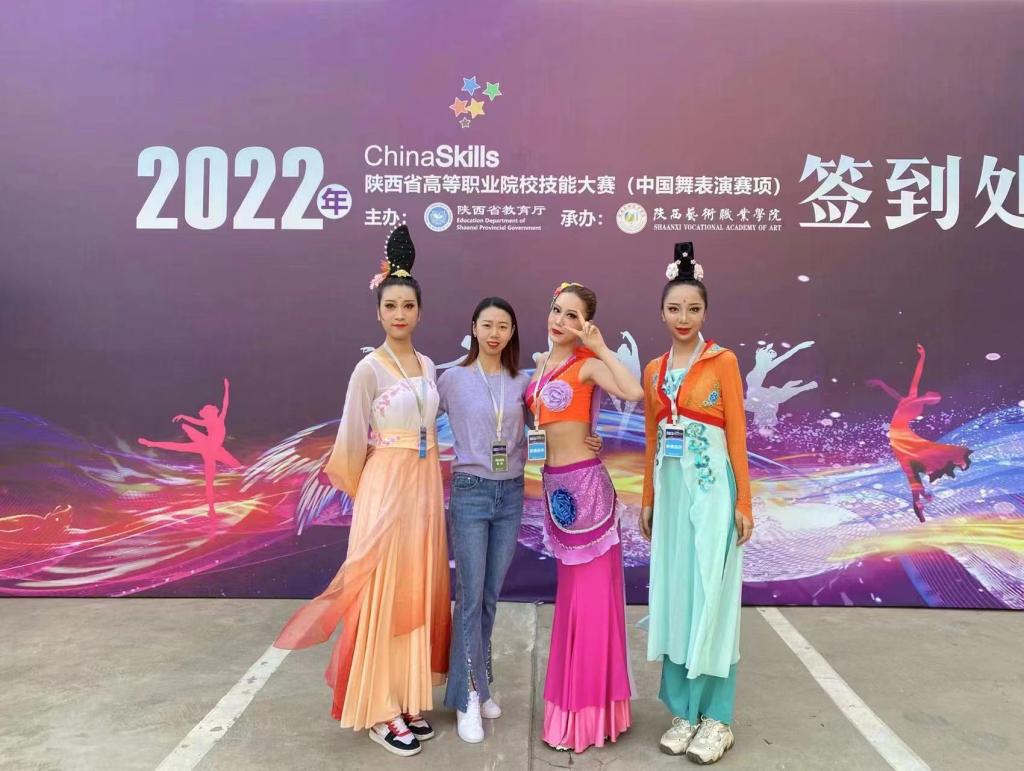 2022年4月2至3日,由陕西省教育厅主办的陕西省高等职业院校技能大赛“中国舞表演”赛项在陕西省艺术职业学院举行。来自全省21所兄弟院校的48名选手参加了本次比赛,以舞相会、同台竞技。我校选送三位学生张睿、吴乐乐、翟羽歆参赛,最终,由我校教师杨梦涵指导的张睿同学《花儿》得到了第18名,获得了三等奖的好成绩。