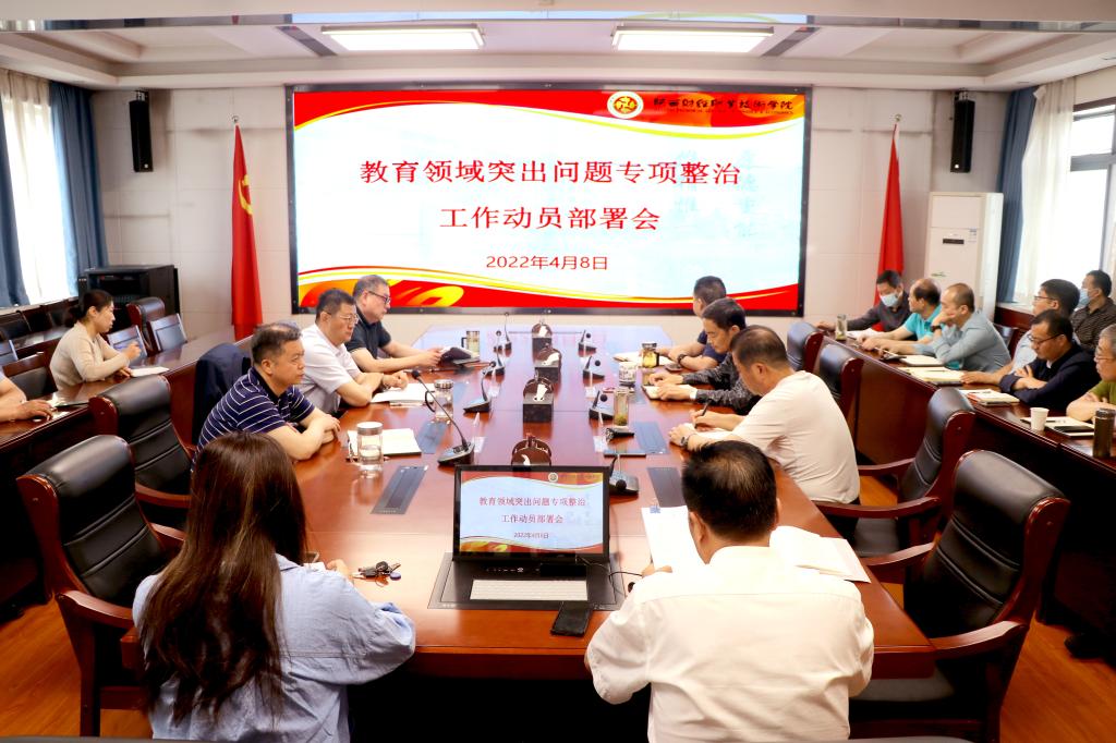 4月8日上午,学校召开教育领域突出问题专项整治工作动员部署会。全体班子成员,党政办公室、党委组织部、党委宣传部、纪委综合室、纪委监督检查室、人事处、教务处、财务处、学生工作处、基建处、教学质量管理中心等部门负责人和各二级学院党政负责人参加了会议。会议由党委副书记朱华斌主持。