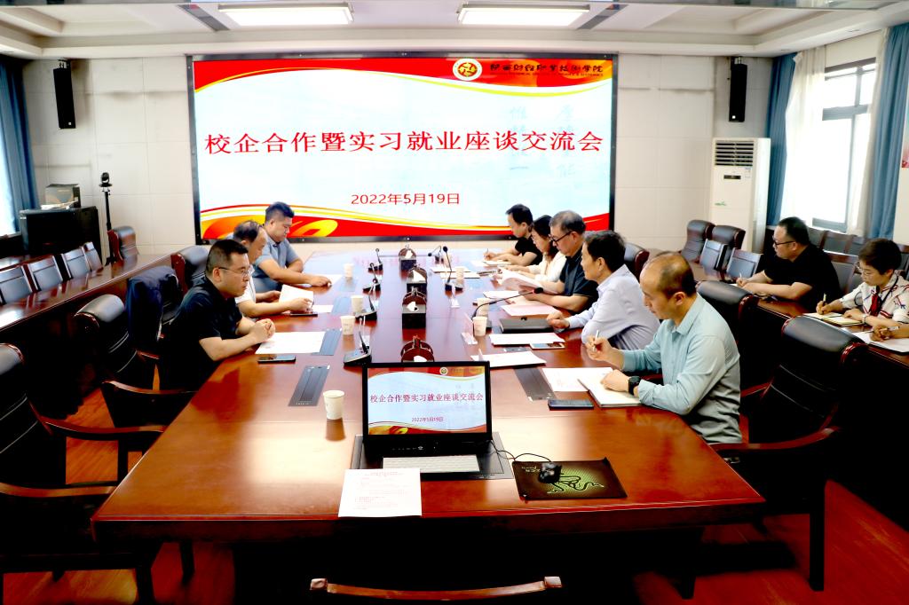 5月19日上午,西安市代理记账行业协会秘书长张新强带领陕西泾航企业管理集团有限公司董事长辛波、陕西同鑫财税策划管理有限公司董事长安钊一行4人赴我校开展校企合作暨实习就业座谈活动。院长程书强、副院长张秦龙出席会议,学生工作处、用友·新道会计学院、就业创业中心负责同志及相关人员参会。