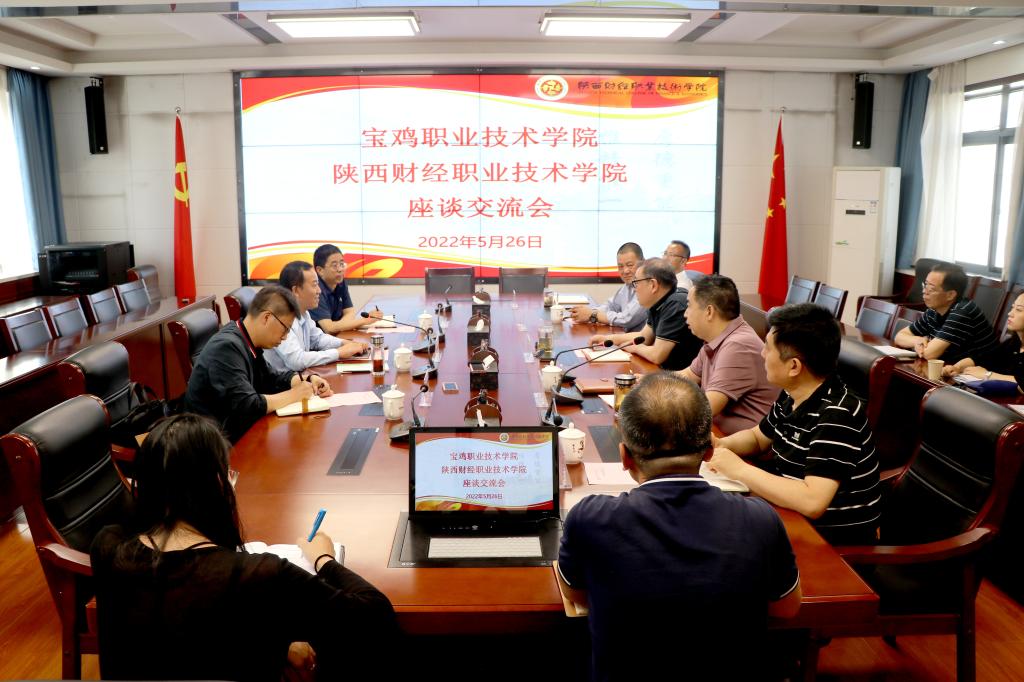 2022年5月26日上午,宝鸡职业技术学院院长张永良带领招生办公室主任刘岁岐、招生办公室综合科科长吴峻一行3人来我校调研交流招生工作。我校院长程书强、副院长王勇以及教务处、招生办公室、党政办公室等部门负责同志参加座谈。