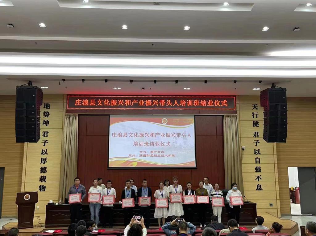 9月19日,我校人文艺术学院具体承办的为期一周的南开大学培训项目“庄浪县文化振兴和产业振兴带头人培训班”圆满结束。陕西省农业农村厅总经济师张旭锋,南开大学继续教育学院教师、培训班班主任李瑞琪出席结业典礼,人文艺术学院相关负责人和参训学员参加典礼。人文艺术学院院长、中国工艺美术大师、全国劳动模范贺兴文主持典礼。