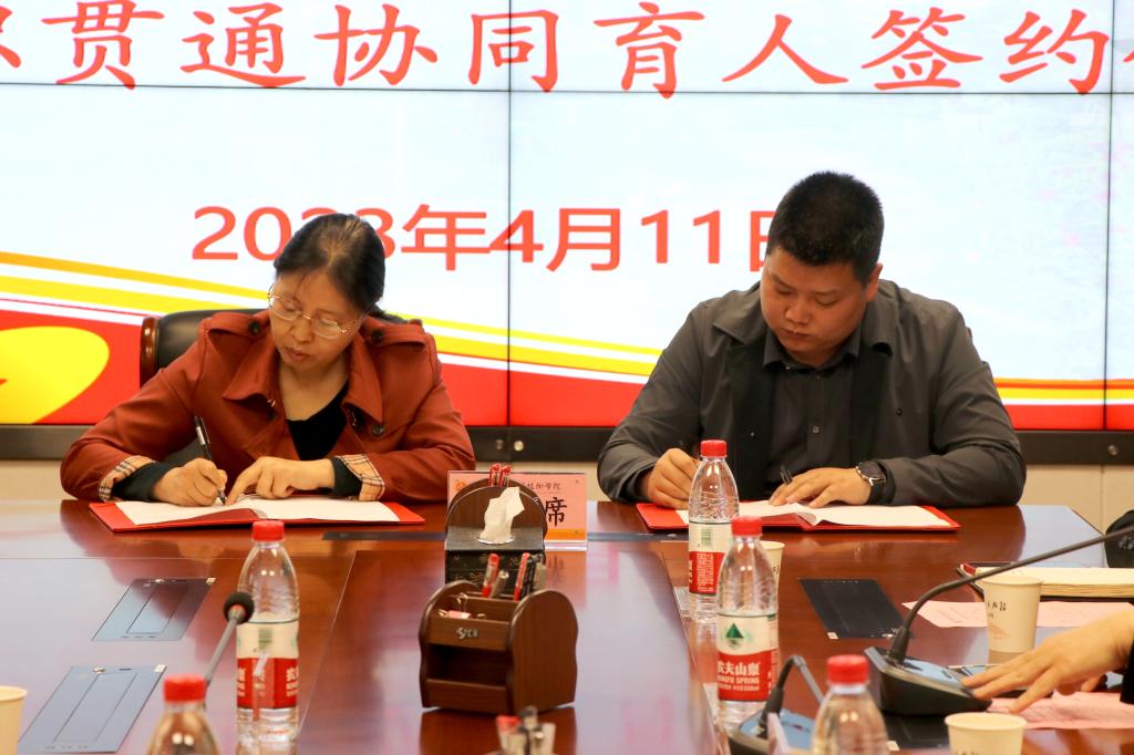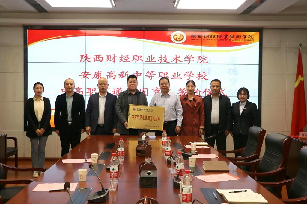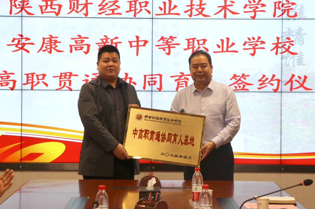 严丽丽代表学校与安康高新中等职业学校签订“中高职贯通协同育人合作协议”,雷旭向安康高新中等职业学校授牌。此次签约授牌为两校深度合作、协同发展提供了平台,打通了中高职衔接纵向融通的通道。