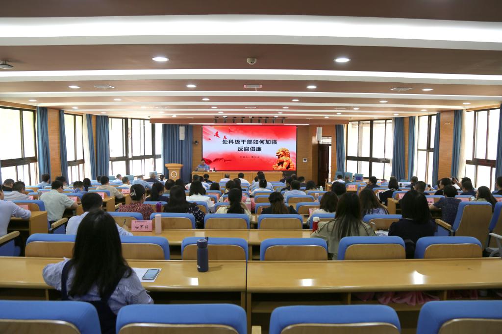 4月18日下午,学校党委副书记、纪委书记殷兴光以《如何加强处科级干部反腐倡廉》为题,在继续教育培训厅为处科级干部和基层党组织书记作专题培训报告,全体处科级干部和各基层党组织书记110余人聆听报告。