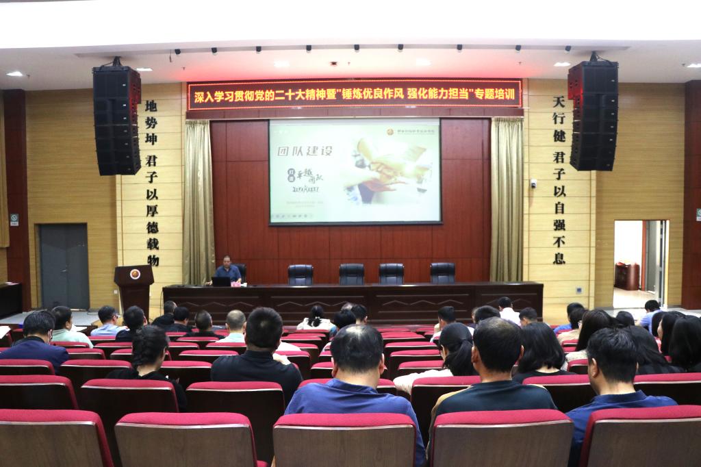 4月20日下午,学校副院长雷旭以《团队建设与管理》为题,在学术报告厅为处科级干部和基层党组织书记作专题培训报告,全体处科级干部和各基层党组织书记110余人聆听报告。