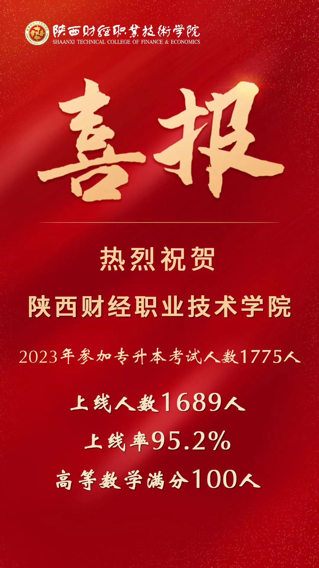 近日,陕西省教育考试院公布2023年陕西省普通高等学校专升本招生录取分数线,我院共有1775名应届毕业生参加考试,升本人数再创新高!