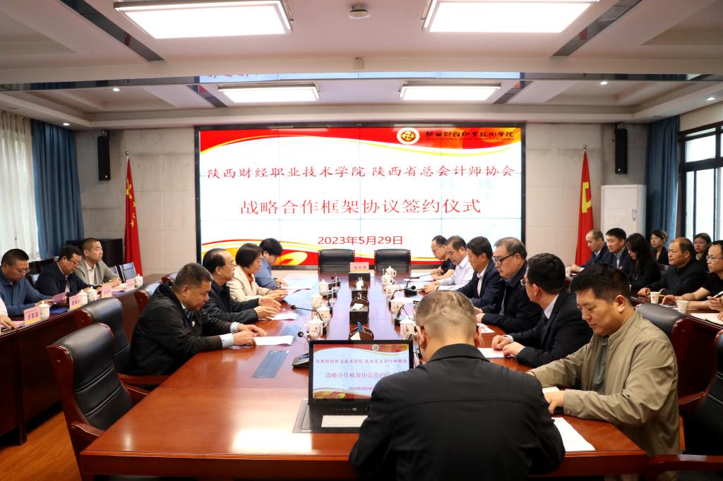 5月29日下午,我校与陕西省总会计师协会、西安食品工程高级技工学校、西咸理工高级职业中学战略合作暨中高职衔接签约仪式在办公楼四楼会议室举行。陕西省总会计师协会会长舒煜、协会秘书长蔺翠萍、协会常务理事虞秀选、长安开元教育集团总经理翟维铁、西安食品工程高级技工学校校长万家国、西咸理工高级职业中学常务副校长袁新学、协会副秘书长韩罕、西咸理工高级职业中学就业办主任杨继峰、长安开元教育集团市场部主任刘海凤;学院党委书记张志华、院长程书强、教务处处长兼质量管理中心主任刘军、招生办主任兼人事处处长侯文亮、学生处处长乔晶策、团委书记张洁,创新创业园区管理办副主任曹崇禧、各二级学院院长及书记参加了会议,会议由副院长雷旭主持。