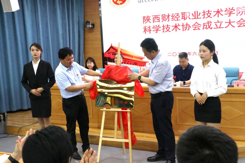会议表决通过了《陕西财经职业技术学院科学技术协会实施〈中国科学技术协会〉细则》(审议稿),选举产生了我校科协第一届委员会委员、主席、副主席、秘书长。在热烈的掌声中,吕建军与我校纪委书记殷兴光为校科协揭牌。