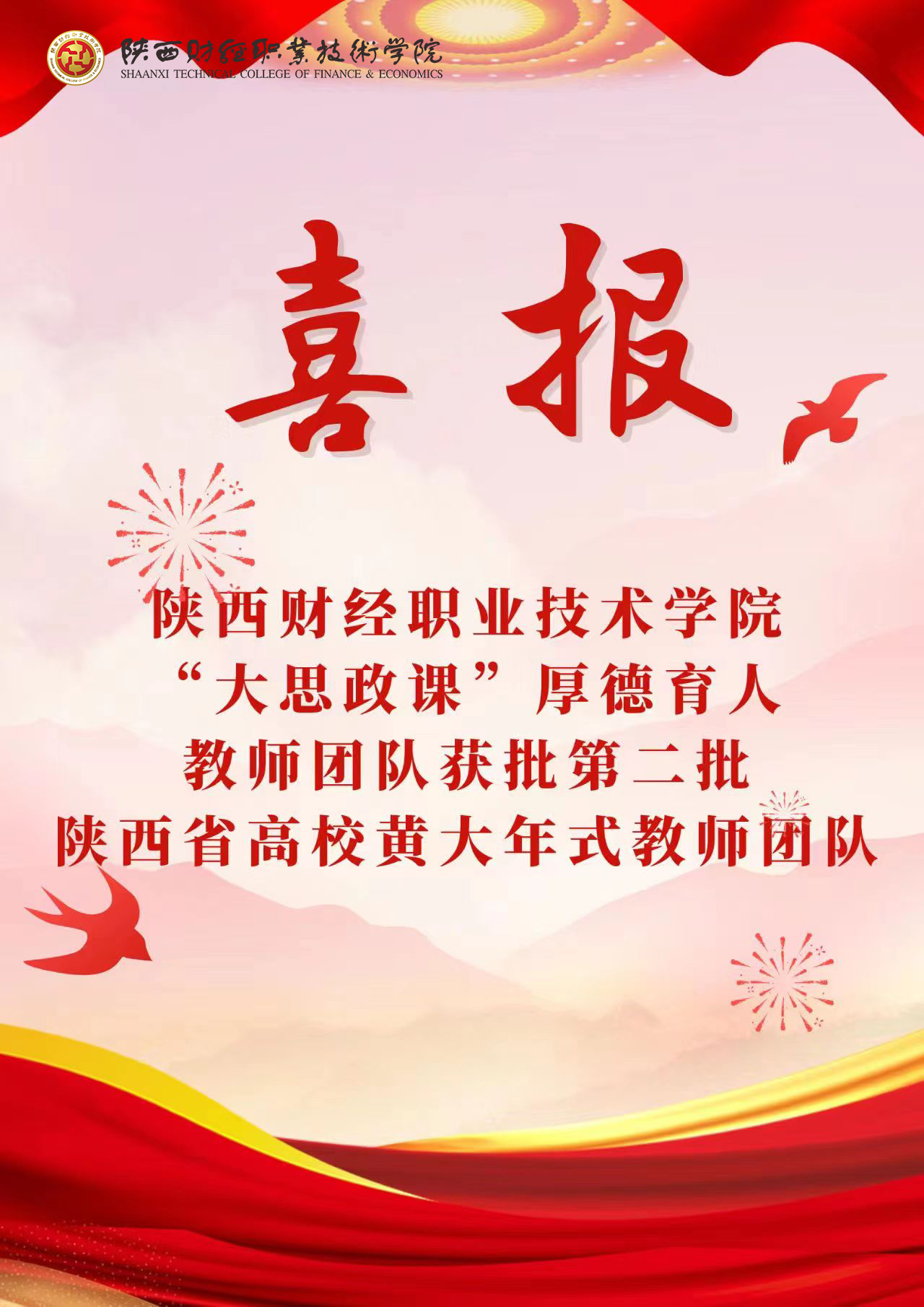 7月5日,省教育厅公布了第二批“陕西省高校黄大年式教师团队”名单,全省共有29个高校教师团队入选,其中高职院校入选6个。经过多年的艰辛付出和不懈努力,我校“大思政课”厚德育人教师团队被成功认定为“陕西省高校黄大年式教师团队”。