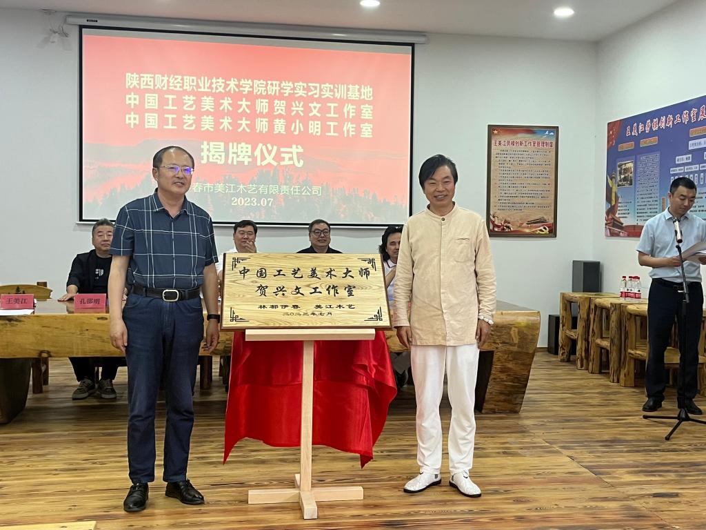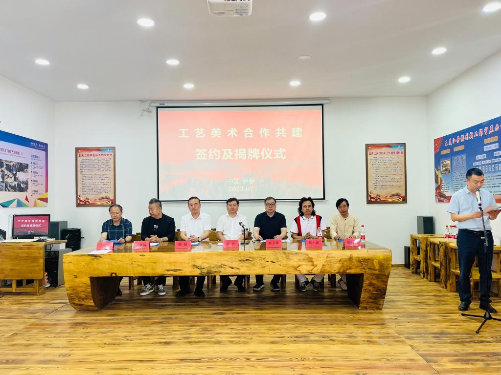 赓续中华传统文化,创新合作谋共赢。7月19日,我校与伊春市美江木艺有限责任公司签署校企合作框架协议并揭牌研学实习实训基地、贺兴文大师工作室,揭牌仪式在美江木艺有限责任公司举行。伊春市工信局局长申勇对我校一行的到来表示热烈欢迎,并希望我校积极支持校企融合创新,通过人才信息资源优势与融合创新优势双向赋能,着力共同打造集项目研究、创意研发、人才培养、成果转化于一体的合作交流平台。院长程书强表示,真诚希望企业界同仁更多参与高职教育合作办学,积极探索校企合作、大师工作室共建等多样化合作模式。签约及揭牌仪式的成功举行,标志着我校与伊春市工艺美术行业的交流与合作迈出了坚实的一步。彼此间将开展更深层次交流合作,共同为赓续工美经典、推进合作共赢凝聚强大的发展力量。