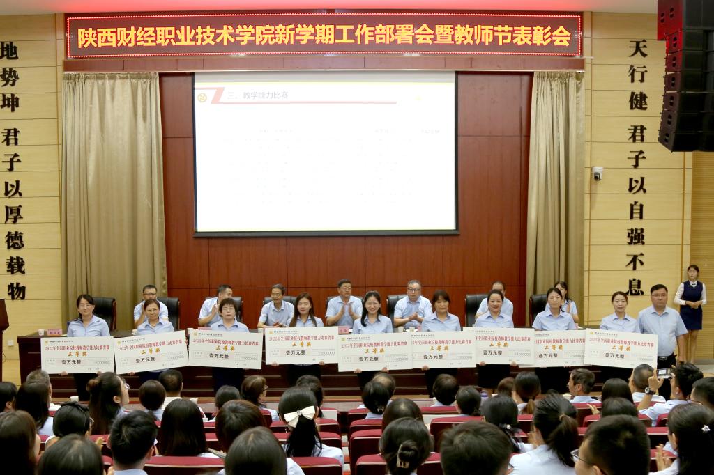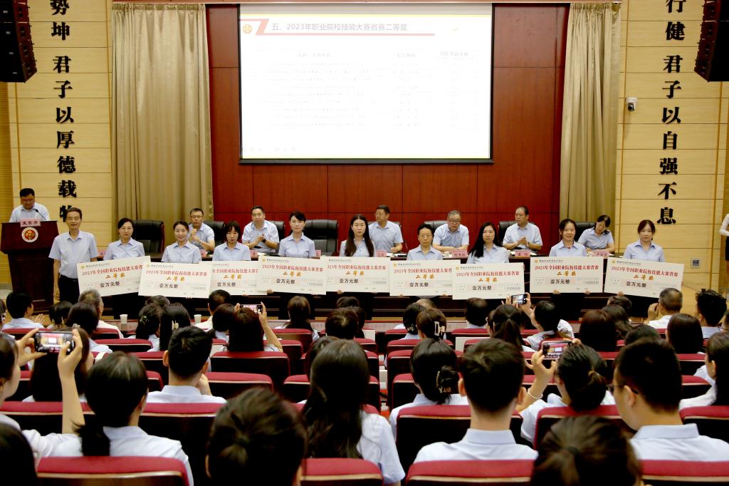 大会对一年来获得上级表彰的人员、参加全国全省各项大赛获奖人员以及学校评选的“优秀教师”“先进教育工作者”等近百个奖项120余人进行了表彰,颁布了荣誉证书和奖金。