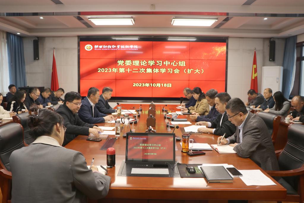 10月18日下午,我校在办公楼四楼会议室召开党委理论学习中心组第十二次集体学习扩大会,深入学习习近平总书记重要讲话和重要指示批示精神,进一步统一思想、深化认识。党委领导班子成员,处级中层干部,党总支、直属党支部书记参加。会议由党委书记张志华主持。