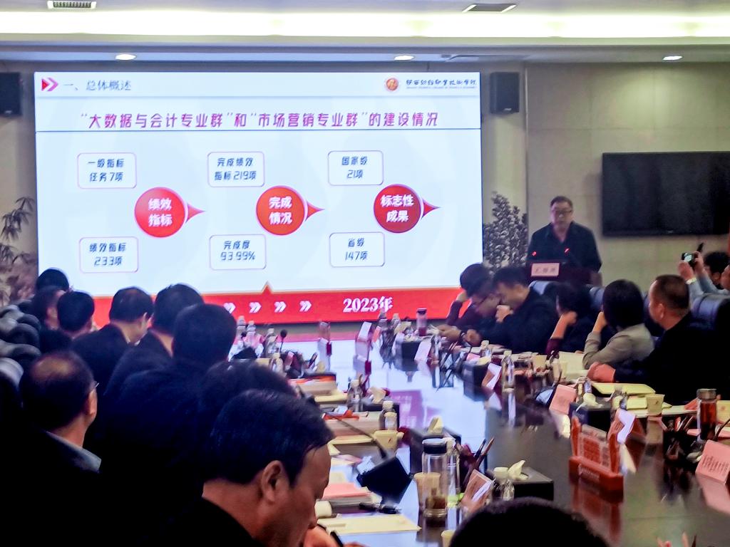 程书强代表学校作了汇报,他通过“双高建设总体概述、任务及绩效完成情况、经费到位和执行情况、推进与保障措施、典型经验与做法、问题与解决路径”等六部分汇报了我校省级“双高计划”建设工作,主要汇报了大数据与会计、市场营销两个省级高水平专业群的建设情况,突出汇报了我校在全国党建工作样板支部、国家级教学成果奖、职业技能大赛一等奖、“十四五”规划教材、教学资源库、教育部数字校园试点院校、未来技能课程开发和国际标准制订、省级黄大年式教学团队、青年创新团队等方面取得的标志性成果,以及双高建设取得实效的三个典型做法:一是以“两工程、两计划”为依托,构建“大思政”育人新格局;二是加强外引内培,构建“高层次人才”培养新格局;三是以“一院一坊”为抓手,构建“国际化办学”新格局。我校省级“双高计划”建设整体推进情况得到与会教育厅领导和兄弟院校的充分肯定。