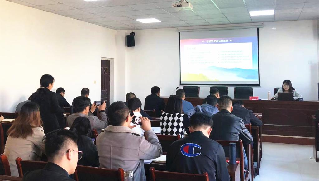 为推进学习贯彻习近平新时代中国特色社会主义思想主题教育走深、走实,11月1日上午,按照咸阳市青年讲师团统一部署,我校思政课教师、省级教学能手陈洁楠受咸阳市生态环境局礼泉分局党委邀请,以《推动绿色发展 促进人与自然和谐共生》为主题,为礼泉县各乡镇(街道)、部门中青年干部学习班作了专题培训,培训会由中共礼泉县委党校培训处主任古磊主持。