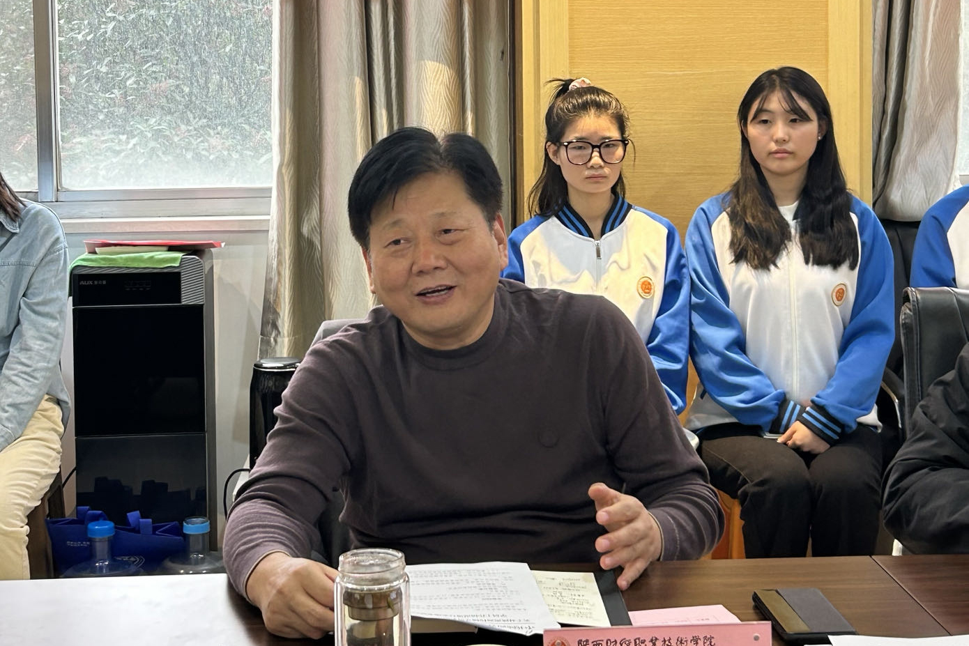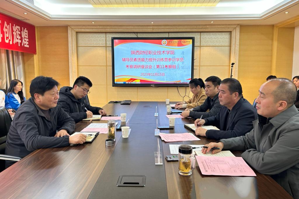 2023年11月15日下午,由杨凌职业技术学院学工部部长陈军峰任组长的省委高教工委第11考察组一行2人莅临我校,对陕西省辅导员素质能力提升训练营参训学员工作情况进行实地考察调研。会议在实训楼二楼会议室召开,学校副校长雷旭出席座谈会,学生处副处长袁永彦、参训学员、辅导员代表及学生代表参加了会议,座谈会由学生处处长乔晶策主持。