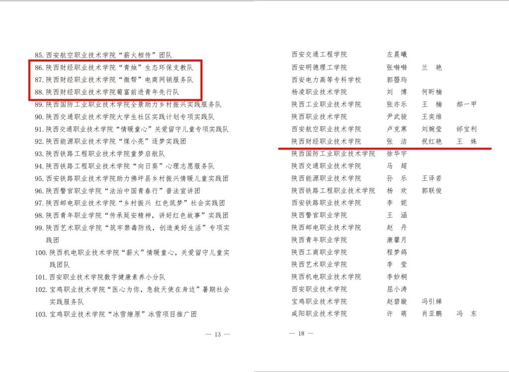 近日,陕西省委宣传部、省文明办、省教工委、团省委、省学联联合印发《关于2023年陕西省大中专学生志愿者暑期文化科技卫生“三下乡”社会实践活动先进集体、先进个人的通报》,我校荣获2023年“三下乡”活动省级示范学校,“青烛”生态环保支教队、“微帮“电商网销服务队、葡富前进青年先行队荣获2023年省级优秀团队,张洁、祝红艳、王姝三位教师荣获省级先进个人。