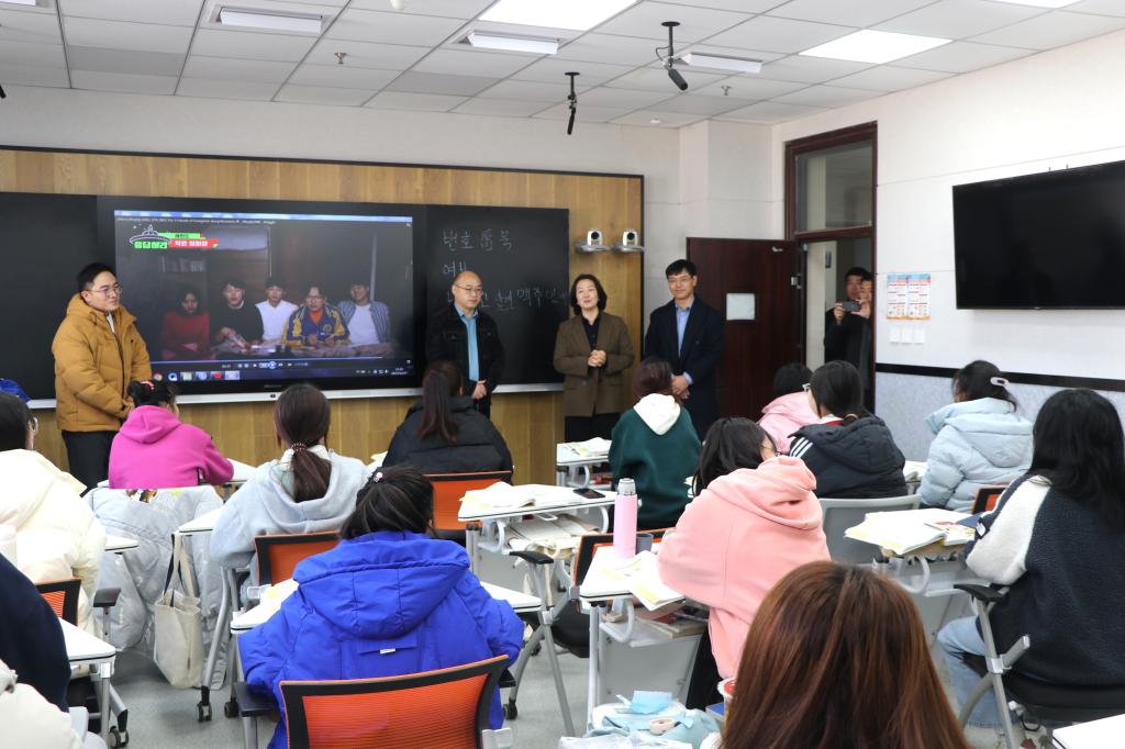 双方分别播放学校宣传片,并就国际化办学、教师互访学习、教师读博深造等方面展开深入讨论。程书强代表学校向李贞贤、金渭杓赠送纪念品。随后,李贞贤一行在学校部门处室领导的陪同下参观了全北学院智慧教室。