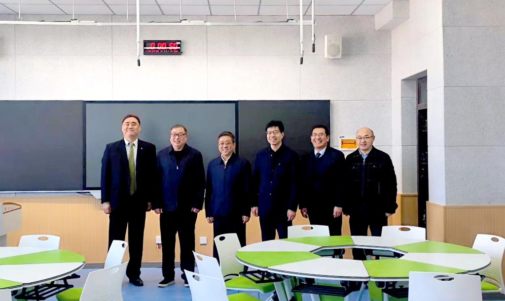 2023年12月16日,我校党委书记高玉峰,校长程书强,韩国全北大学国际处处长朴盛用到全北学院智慧教室建设现场、新建成的11间教学名师工作室和教师创新发展中心会议室检查指导工作。教务处处长刘军、全北学院副院长杨华陪同检查指导。