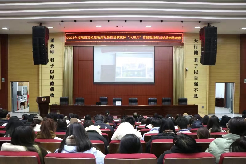 12月21日,2023年度陕西高校思政课程课程思政教师“大练兵”省级现场展示活动在西北工业大学举行。我校全体校领导,党委宣传部、教务处、各二级学院、马克思主义学院等单位负责人,全体专兼职思政课教师,各学院部分专业课教师、辅导员代表、学生代表共300余人参与网络直播观摩。