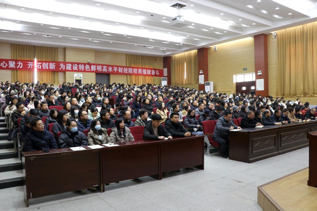 党委书记高玉峰以坚持高质量党建工作为核心,以高质量党建推动主题教育走深走实、推动立德树人根本任务落实、推动学校事业高质量发展、推动作风能力提升、推动“清廉陕财”建设等五个方面,立足全局,着眼大局,为学校2024年的工作指明了方向。