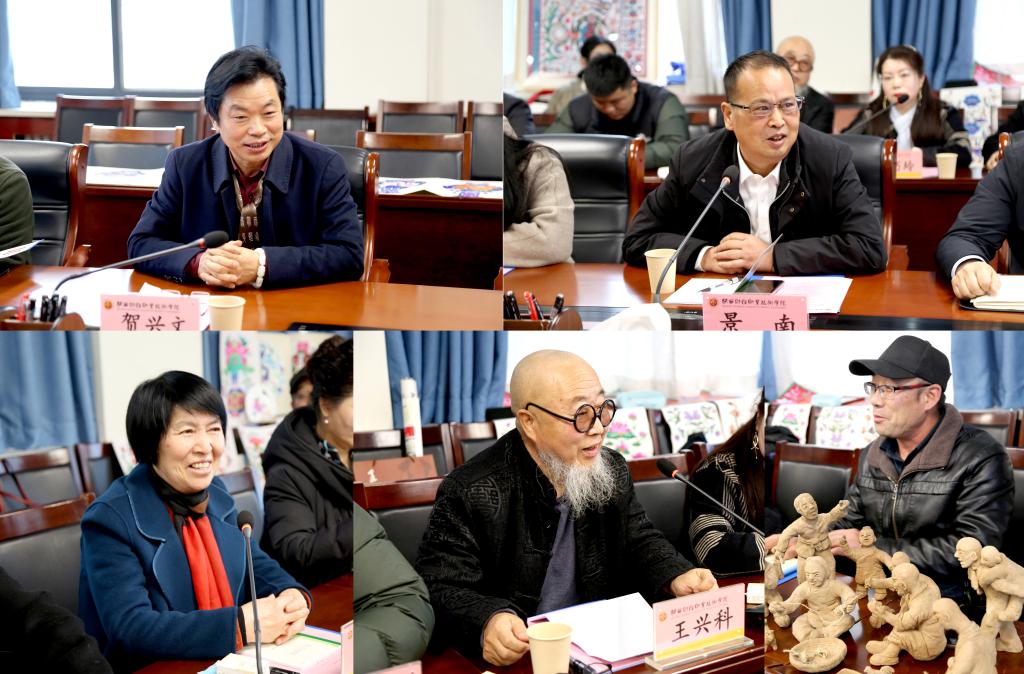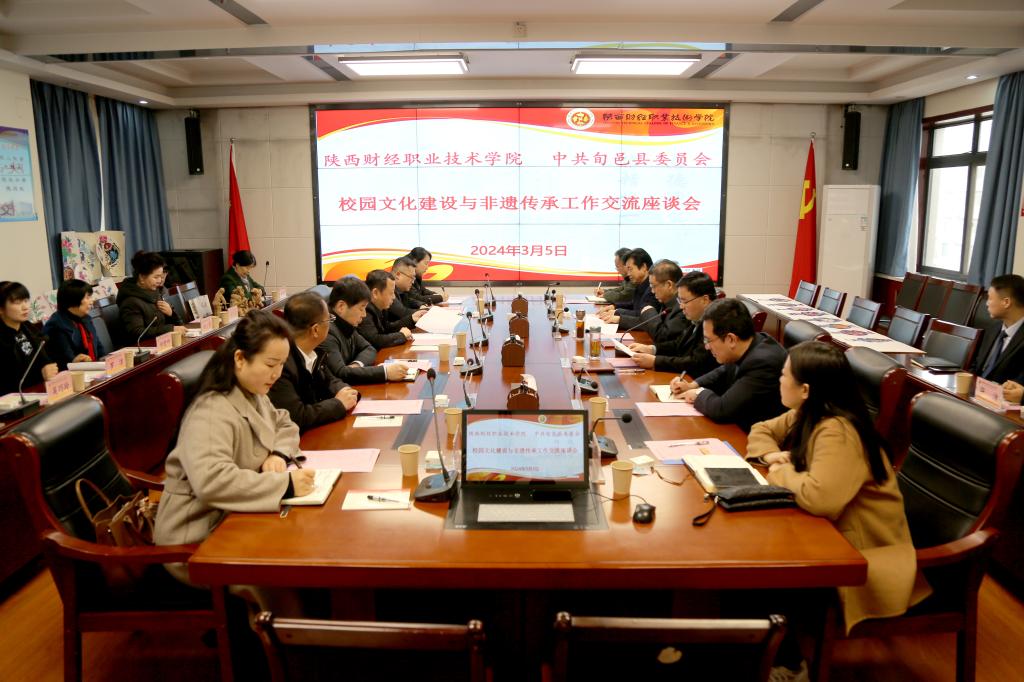3月5日上午,中共旬邑县委副书记、县纪委书记、监委主任陈永胜,旬邑县委常委、政法委书记文海荣,旬邑县文旅局副局长秦敏、旬邑县文化馆馆长第五亚东以及旬邑彩贴剪纸国家级传承人何爱叶等一行13人到我校就校园文化建设与非遗传承工作进行座谈交流。学校党委书记高玉峰,全国劳模、人文艺术学院院长贺兴文,教务处处长刘军、人文艺术学院党支部书记宋波、人文艺术学院执行院长付世秋、团委书记张洁、党政办公室副主任许朝辉参加座谈会,会议由党委副书记、纪委书记殷兴光主持。