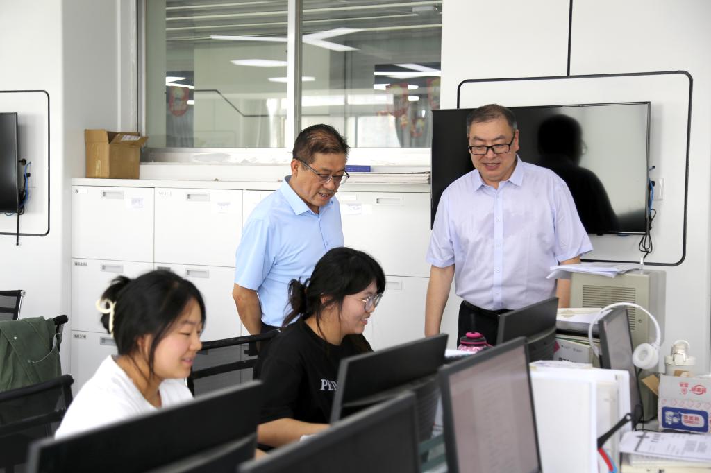 7月12日上午,学校党委书记高玉峰、校长程书强带队检查指导校园各重点部位的安全稳定工作并看望参加技能竞赛训练的师生。党委副书记朱华斌,副校长张秦龙、雷旭,以及党委组织部、党委宣传部、党政办公室、保卫处、总务处、教务处、学生工作处等部门负责人陪同检查。