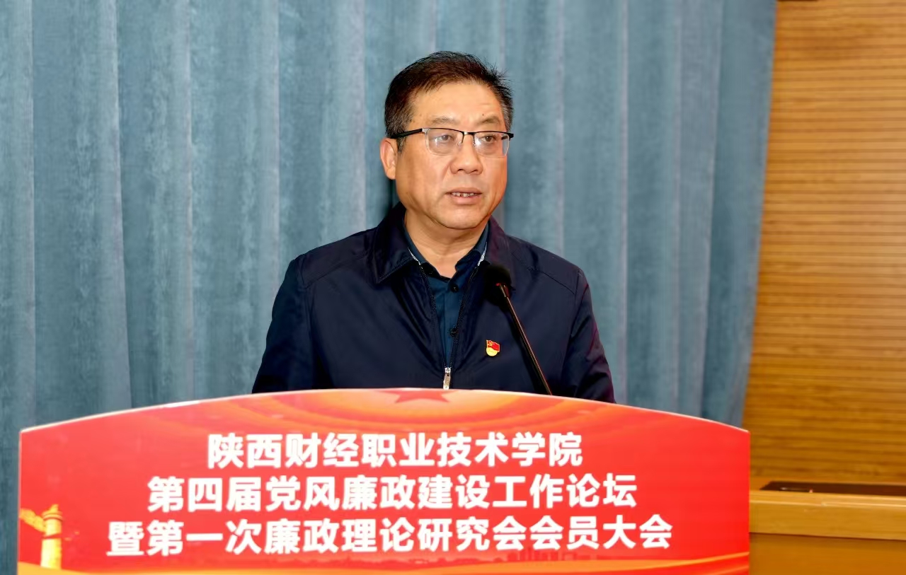 10月30日下午,我校在继续教育培训厅举办了第四届党风廉政建设工作论坛暨第一次廉政理论研究会会员大会。党委书记高玉峰,校长程书强,党委副书记朱华斌,党委副书记、纪委书记殷兴光,副校长雷旭,党委委员、党委宣传部部长严丽丽,党委委员、党委组织部部长穆天楠出席活动,全体处科级干部、纪委委员、专兼职纪检干部、陕西省廉洁文化征文活动获奖教师代表共计120余人参加会议。会议由殷兴光主持。