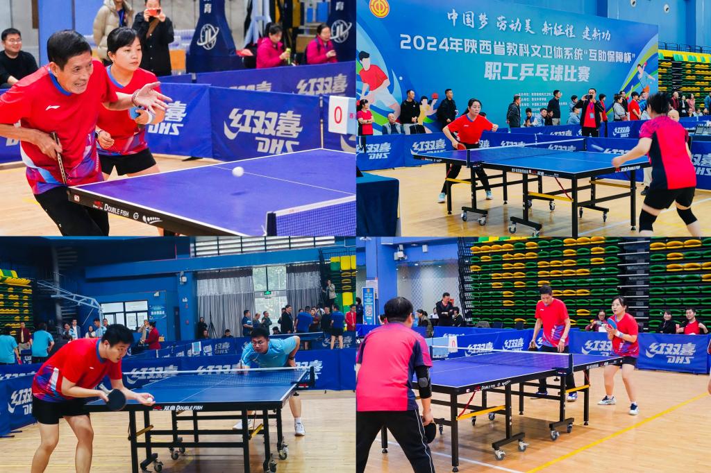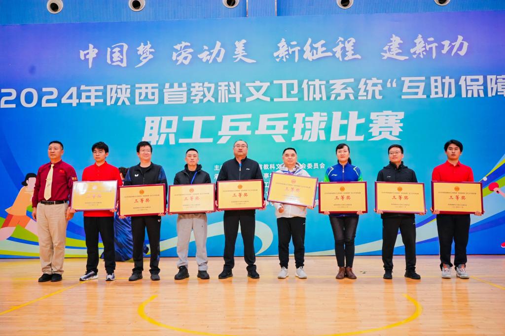 11月1日—3日,由陕西省教科文卫体工会委员会主办,西安外事学院承办的 “中国梦劳动美新征程建新功”2024年陕西省教科文卫体系统“互助保障杯”职工乒乓球比赛在西安外事学院隆重举行。来自全省教科文卫体系统60支代表队近400名乒乓球运动员对决赛场。我校选拔年轻优秀队员组队参加比赛。经过激烈奋战,取得历史最好成绩,首次打入16强,喜获三等奖。陈验风被评为“优秀教练员”,薄阿维、张天胤被评为“优秀运动员”。