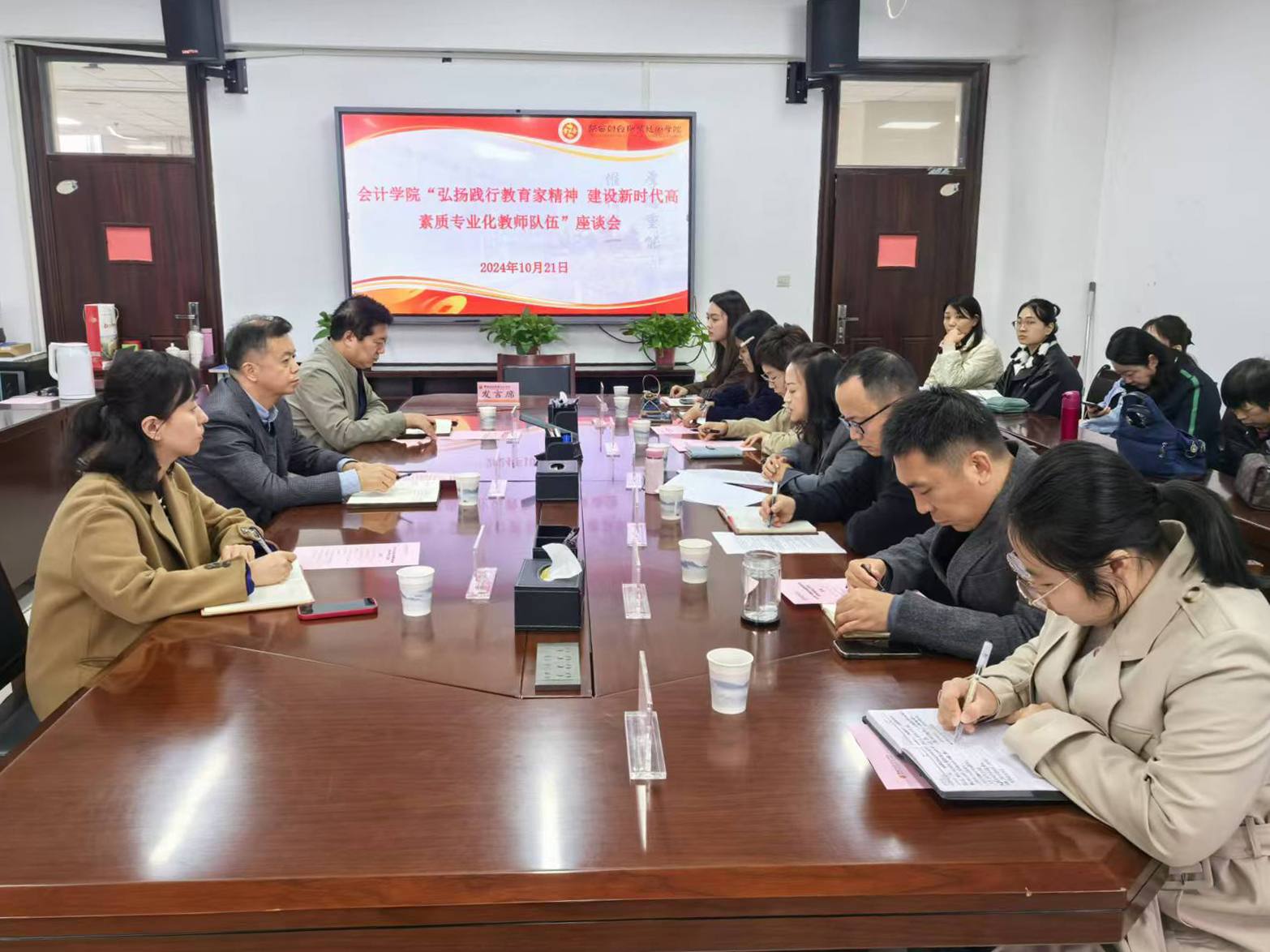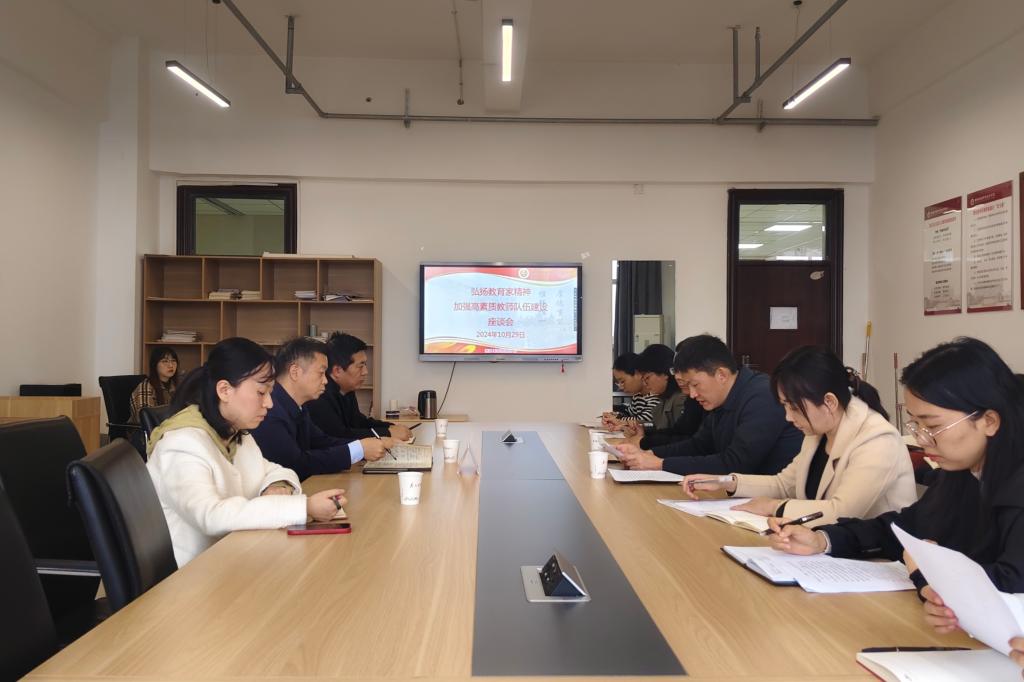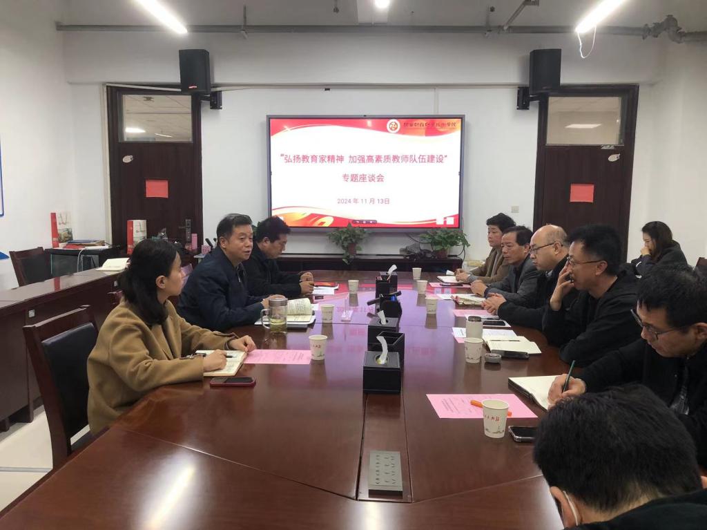 为深入贯彻落实《陕西财经职业技术学院弘扬教育家精神加强新时代高素质专业化教师队伍建设工作实施方案》,充分发挥教育家精神在教师队伍建设中的引领作用,10月16日至11月13日,校党委副书记朱华斌一行先后到会计学院、大数据与人工智能学院、数字商务学院、经济与金融学院、人文艺术学院、运动与健康管理学院、全北学院、应急管理学院、马克思主义学院等9个二级学院分别召开了“弘扬教育家精神,加强高素质教师队伍建设"专题座谈会。各二级学院处科级干部、副高级以上职称专任教师、新入职教师及辅导员代表参加会议,人事处处长侯文亮、人事科科长张珺列席会议。