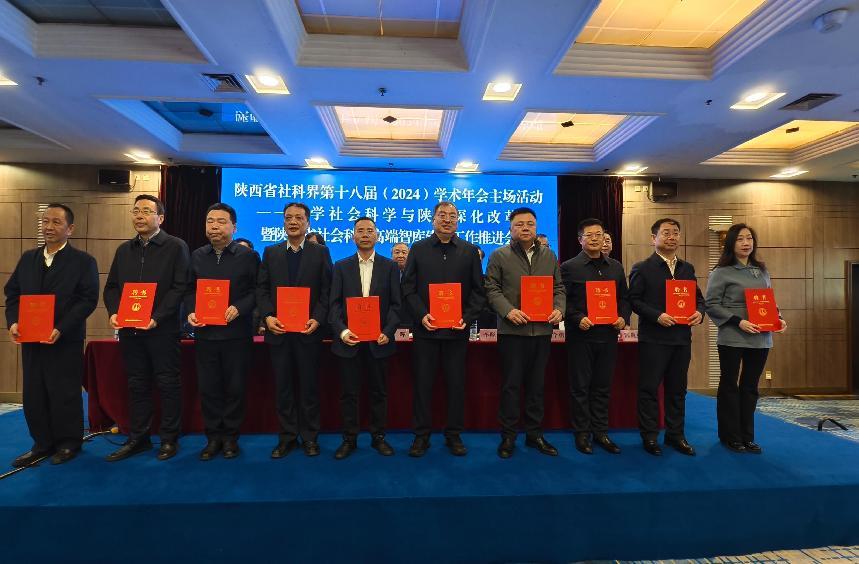 11月26日,陕西省社科界第十八届(2024)学术年会主场活动——哲学社会科学与陕西深化改革暨陕西社会科学高端智库建设工作推进会在曲江惠宾苑宾馆召开。中共陕西省委宣传部副部长李晓刚、陕西省社科联主席甘晖、陕西省社科联党组书记、副主席高红霞、陕西省社科联党组成员、副主席李谫博、中共陕西省委组织部人才二处副处长陈尚东出席会议。