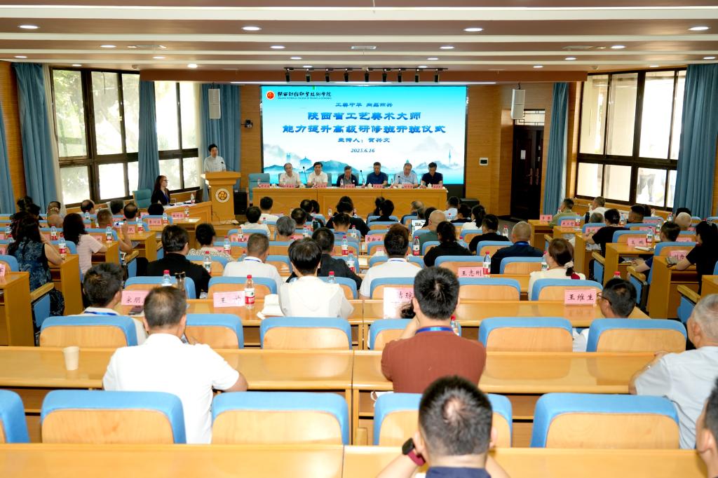 6月16日上午,由陕西经济联合会主办,陕西财经职业技术学院承办,陕西工艺美术学院、陕西省工艺美术协会、陕西恒德瑞影视文化传媒有限公司支持的“2025陕西省工艺美术大师能力提升高级研修班”在我校继续教育培训厅隆重开班。文化部原副部长、故宫博物院原院长、故宫研究院院长郑欣淼,中国工艺美术学会党委书记、理事长才大颖,陕西经济联合会会长刘迎军、副会长王奋利,我校校长程书强,陕西省职业技能鉴定指导中心主任孟庆明出席开班仪式,陕西省省级以上工艺美术大师,以及我校有关部门负责人、工艺美术专业师生代表110多人参加开班仪式。仪式由我校人文艺术学院院长、全国劳动模范、陕西省工艺美术学院院长、陕西省工艺美术协会理事会主席、中国工艺美术大师贺兴文主持。