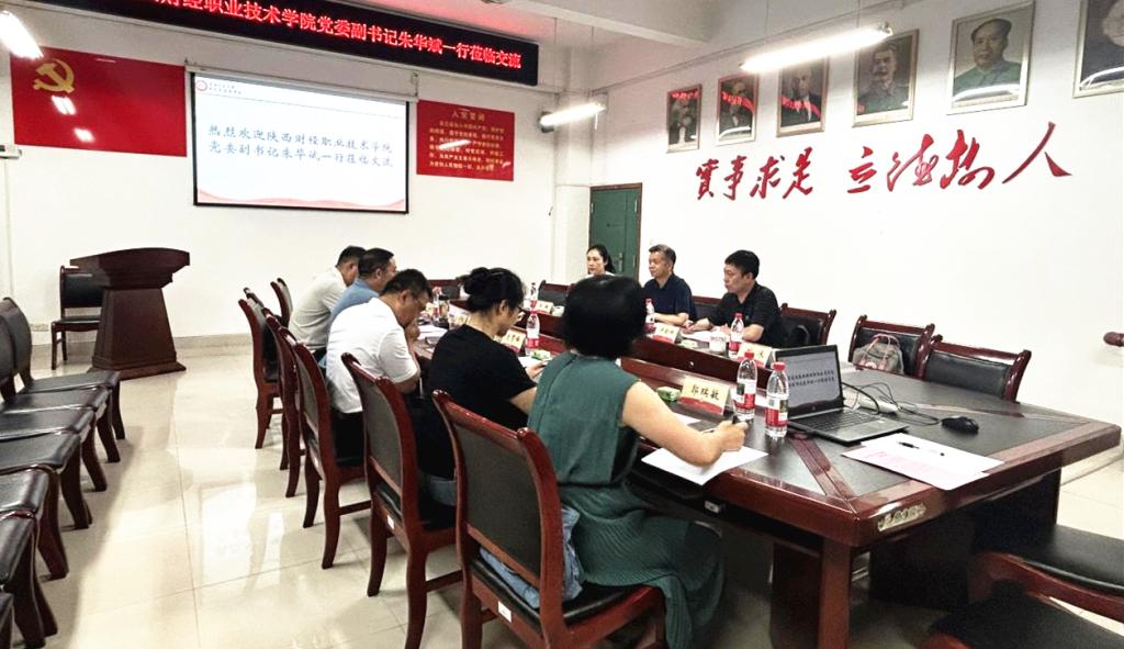 6月19日上午,朱华斌带队赴重庆财经职业学院学习调研。学校党委书记罗勇对朱华斌一行到访表示热烈欢迎,并全面介绍了学校“商科+技能”特色育人体系。副校级干部冯树清重点解读“双高计划”建设成果,马院院长张纬武对我校“司法技术”“法律实务”等赛项省赛取得的成绩表示祝贺,并就做好下一步备赛工作提出意见建议。朱华斌详细介绍了我校基本情况、发展思路以及近年的工作成效,希望以本次交流为契机,进一步加深双方在校际协同、创新发展上的交流合作。随后,与会双方围绕“技能大赛赋能思政课程建设”“校园文化品牌矩阵打造”等主题进行深入交流。